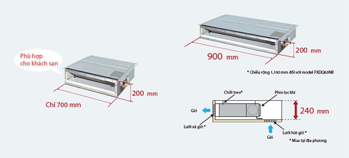 THÔNG SỐ KỸ THUẬT - Dàn Lạnh Nối Ống Gió Multi Daikin Inverter 2 Chiều 21.000 BTU (CDXM71RVMV)