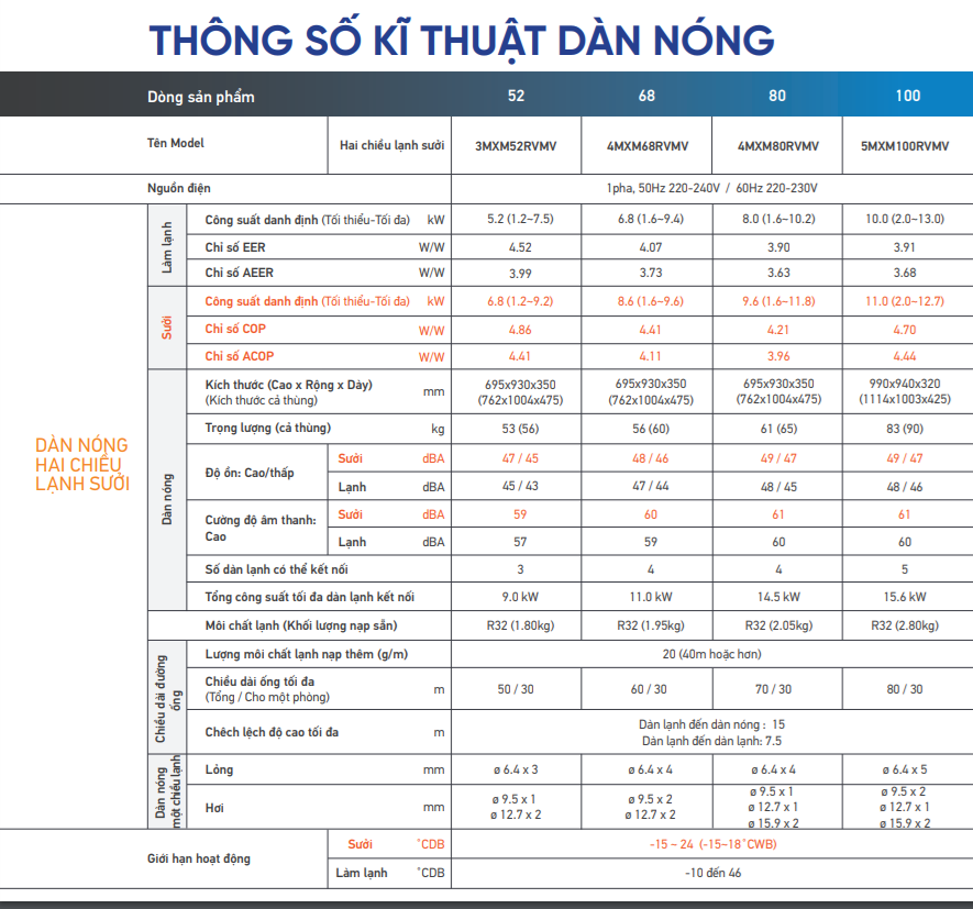 THÔNG SỐ KỸ THUẬT - Dàn nóng Multi Daikin 2 chiều Inverter 5MXM100RVMV