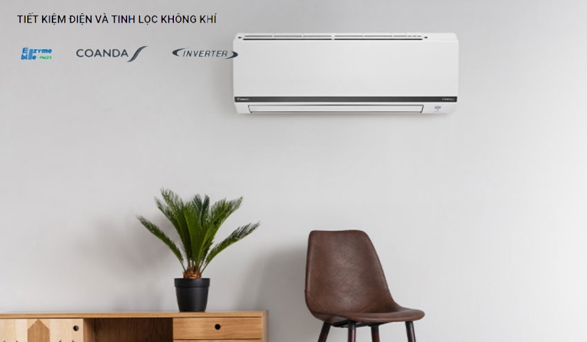 Chiếc điều hòa Daikin này được trang bị phin lọc Enzyme Blue có khả năng giữ lại các hạt bụi, vi khuẩn hay tác nhân dị ứng có trong không khí. Toàn bộ sẽ bị vô hiệu hóa và đồng thời còn khử mùi hôi giúp không gian trở lên sạch sẽ hơn. Với chiếc điều hòa này thì bạn còn có thể tùy chọn thêm cả loại phin lọc bụi PM2.5 để loại bỏ triệt để những hạt bụi siêu nhỏ.